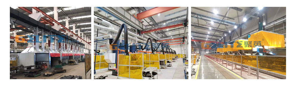 針對人工固定的焊接崗位和多工位的焊接工藝,可以采用多工位集中煙塵凈化治理,根據(jù)固定點位的不同焊接形式(點、線、面等),前端可采用吸氣臂、吸氣罩和房體進(jìn)行收集,達(dá)到集中治理的目的,產(chǎn)品整體設(shè)計美觀,車間占地面積小,可隨意組合更大風(fēng)量。